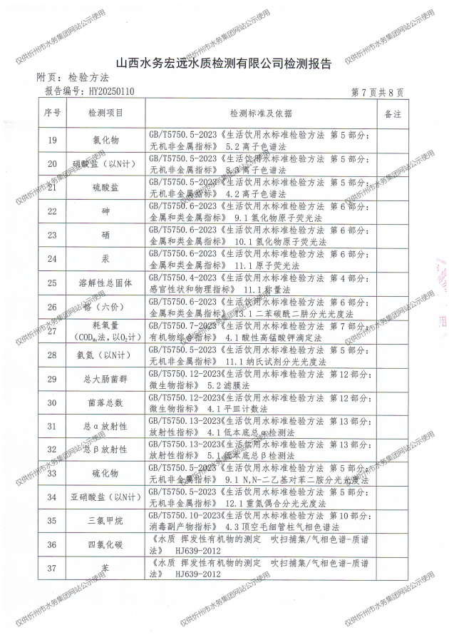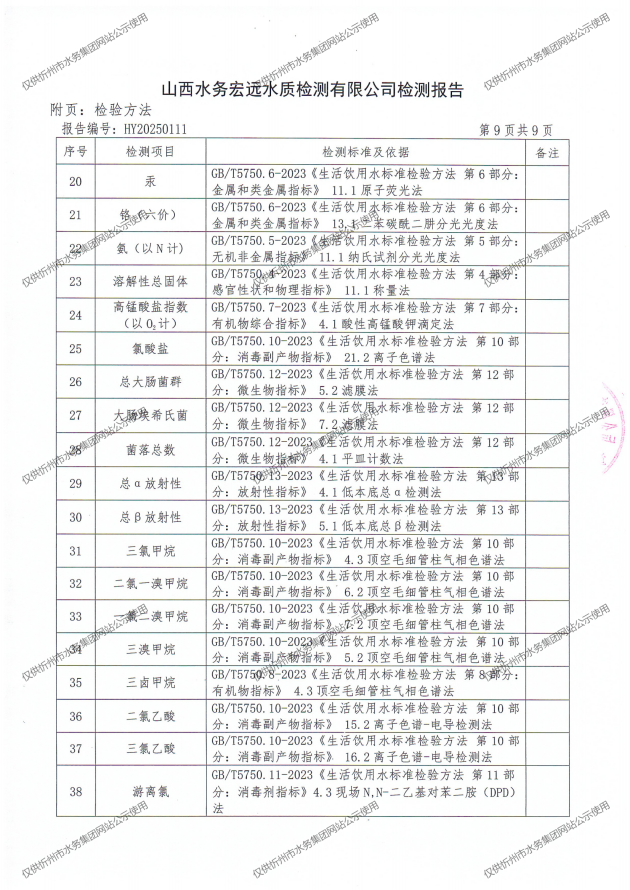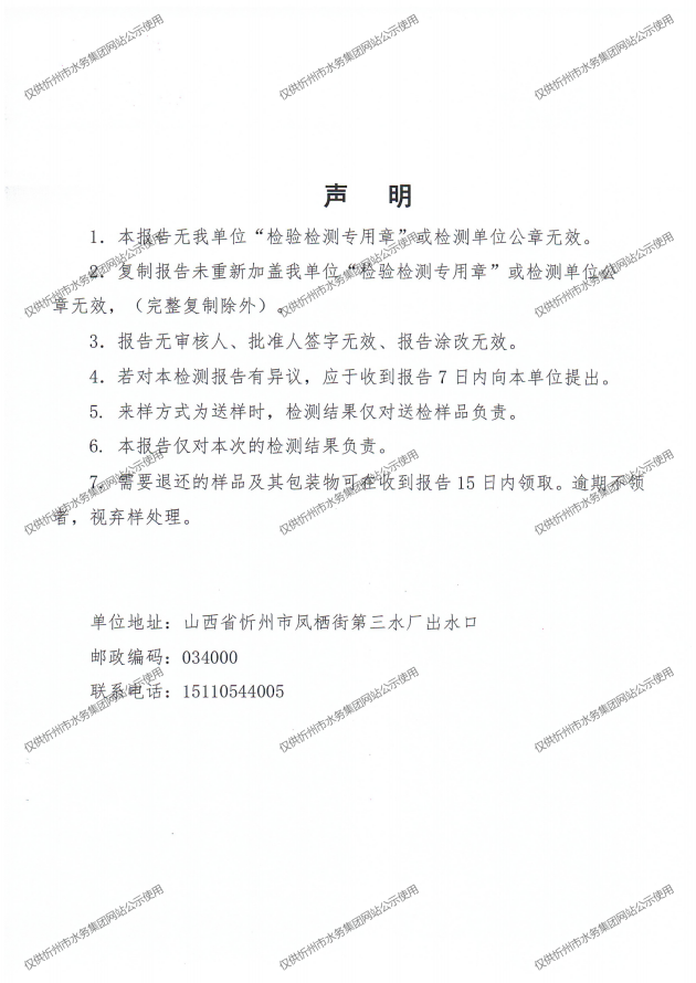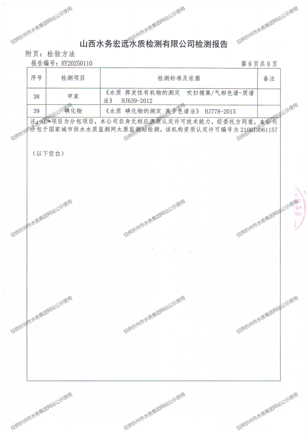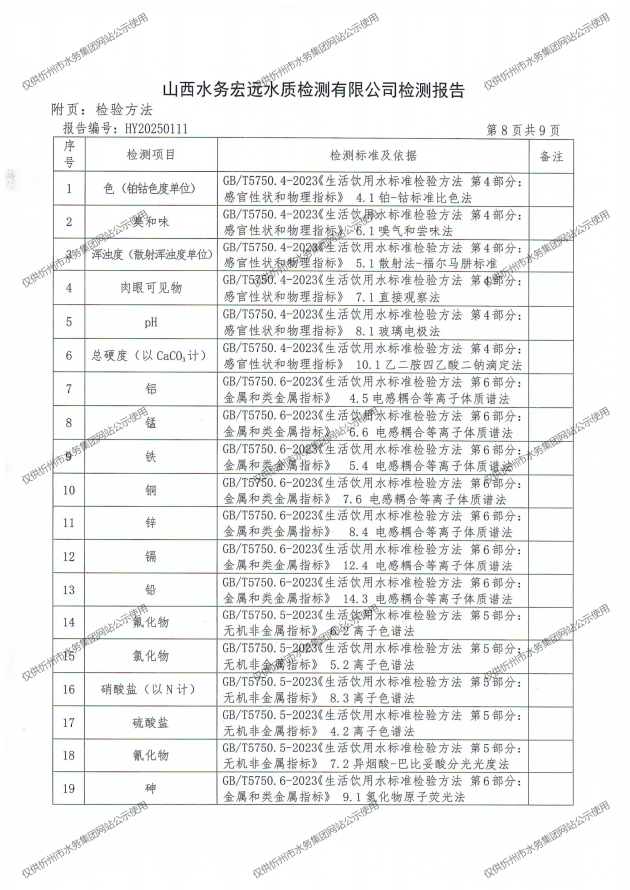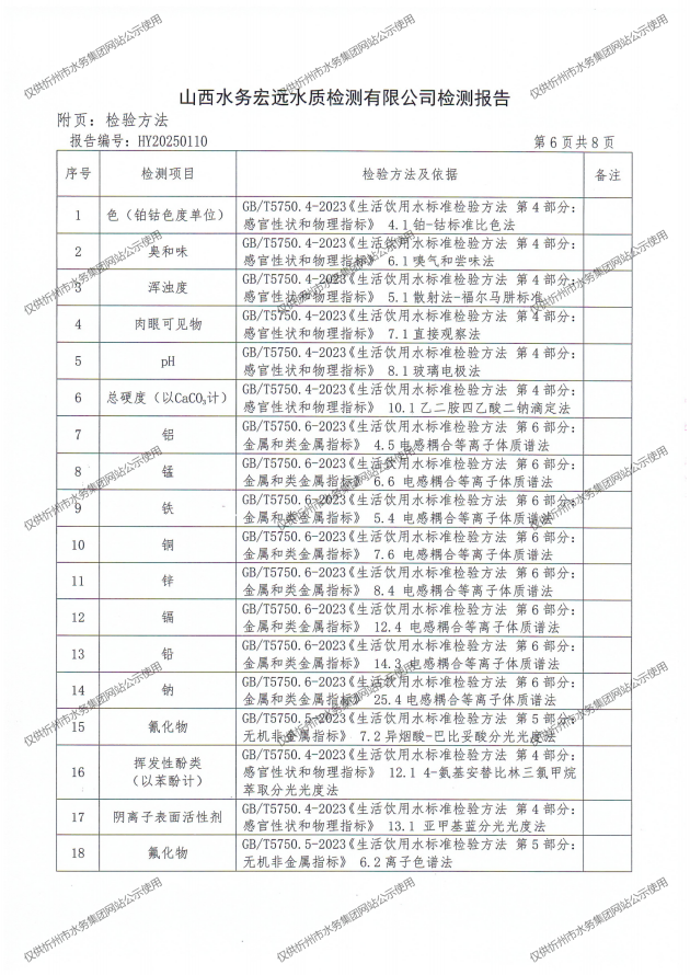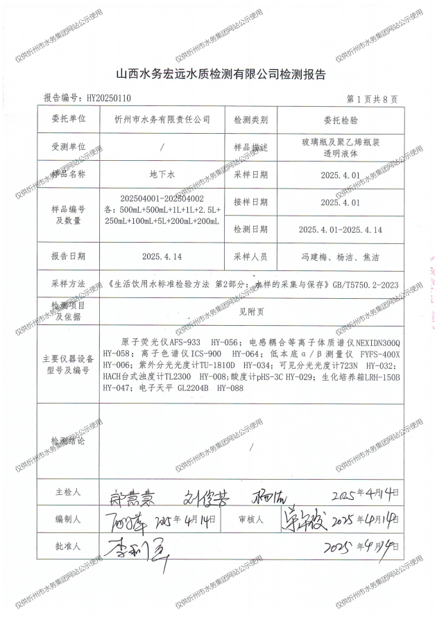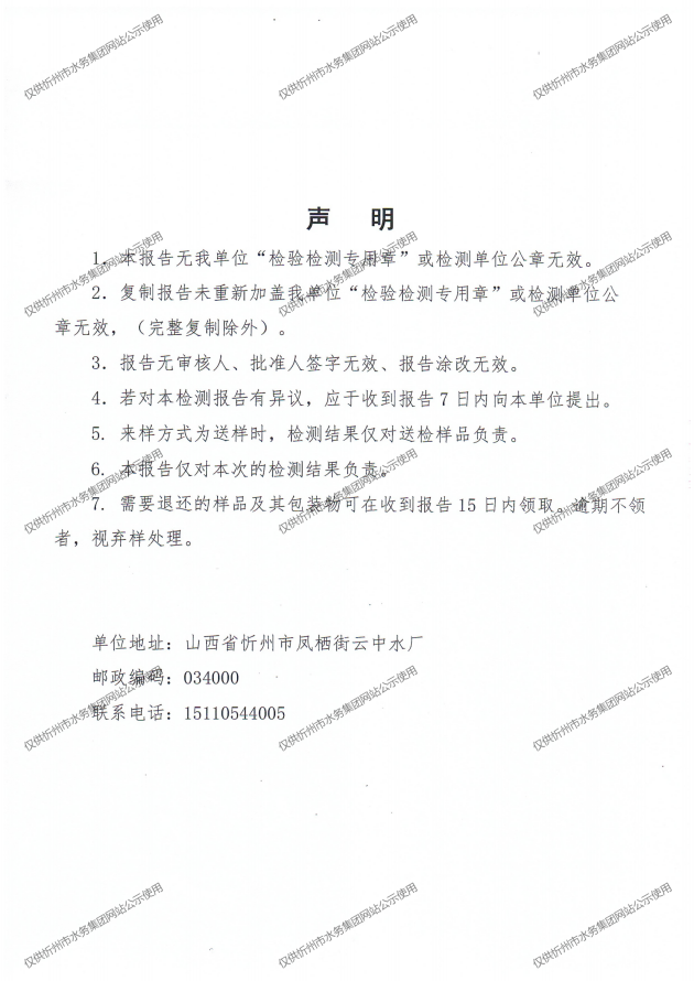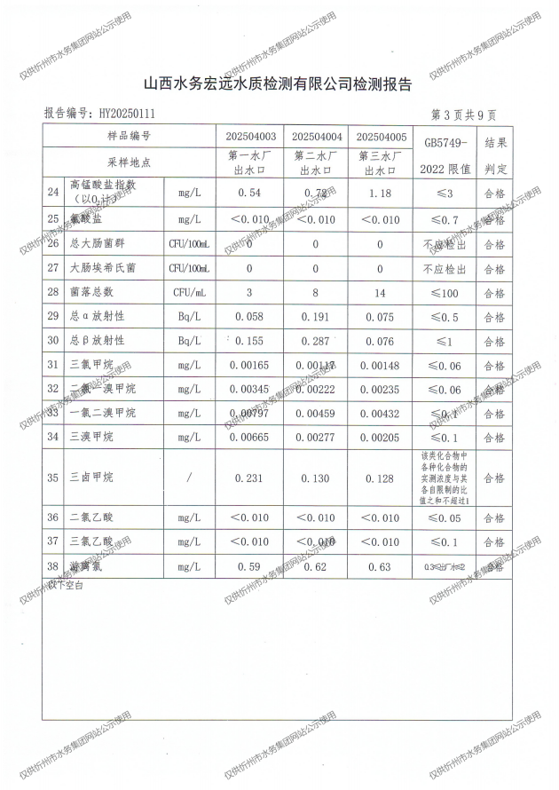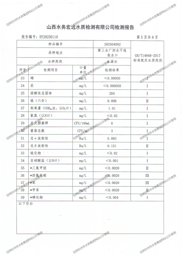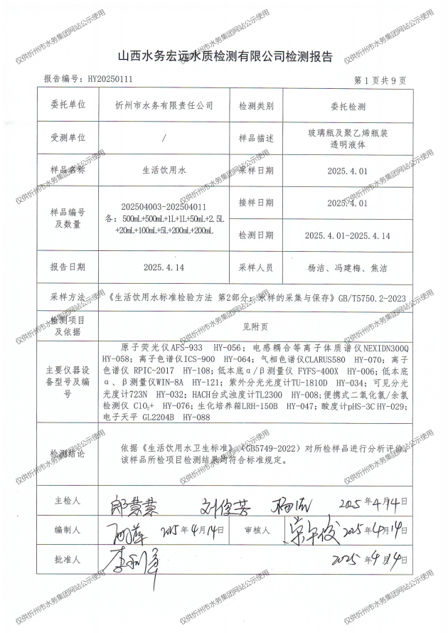 忻州城區(qū)公共供水水源水、出廠水、管網(wǎng)水、管網(wǎng)末梢水2025年4月份水質信息公示
