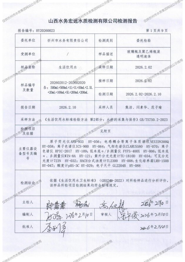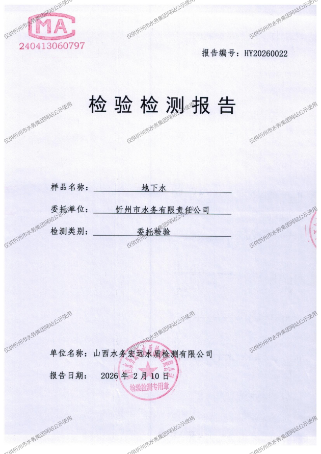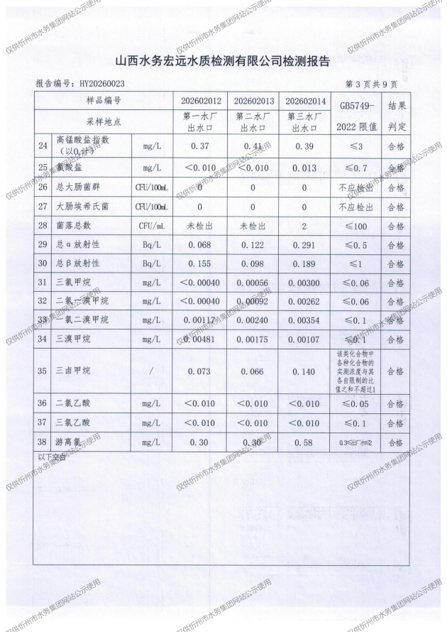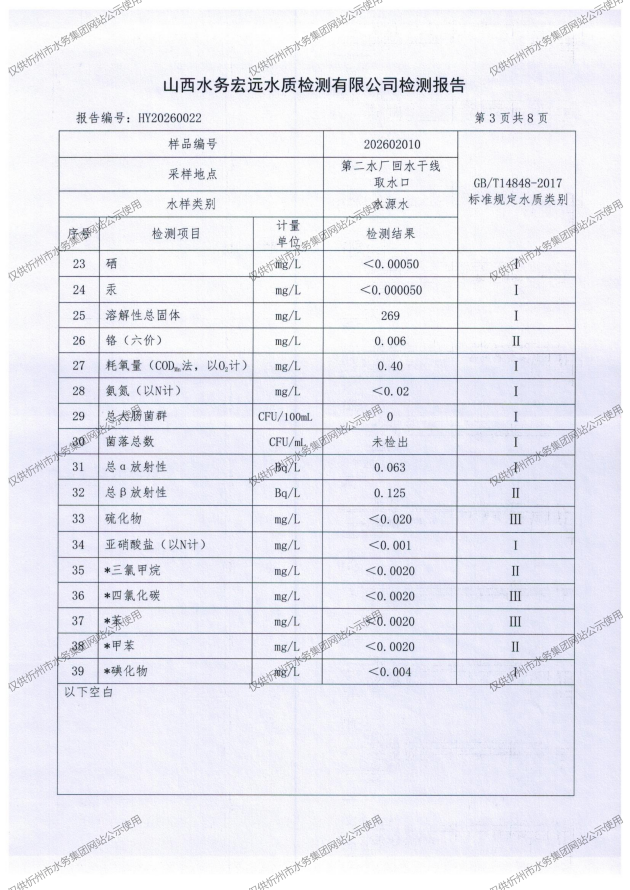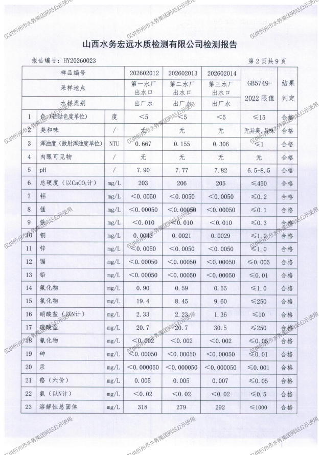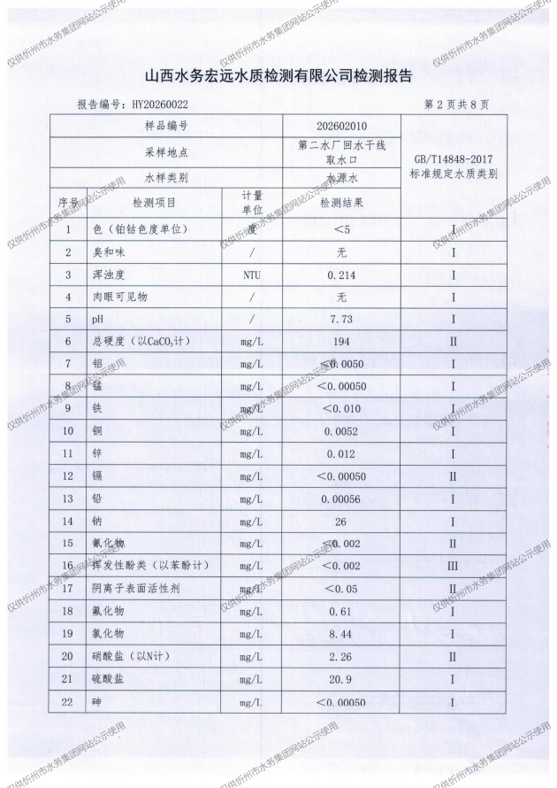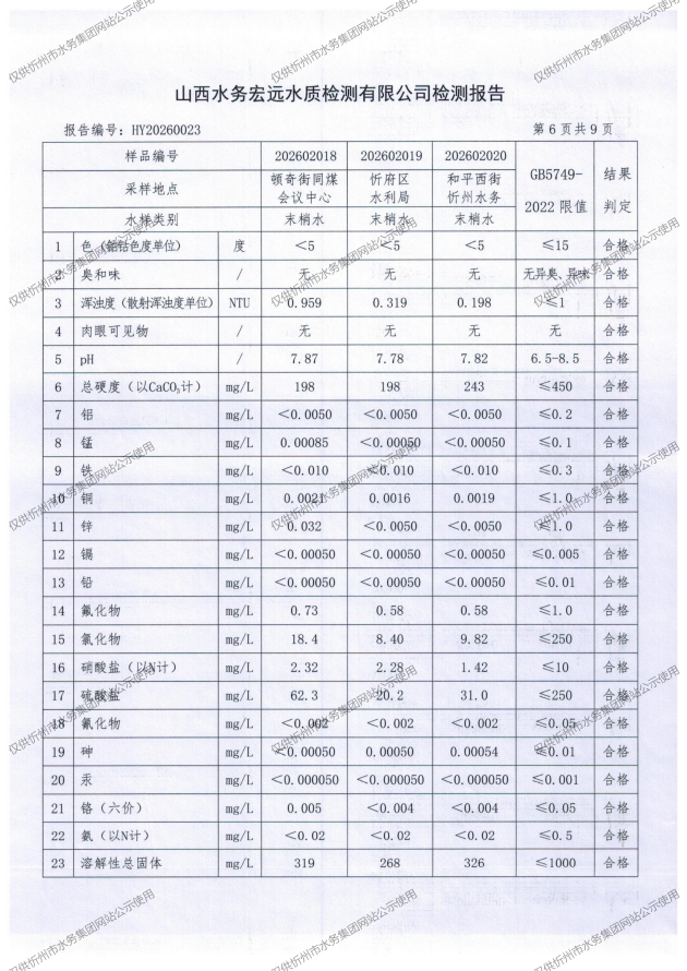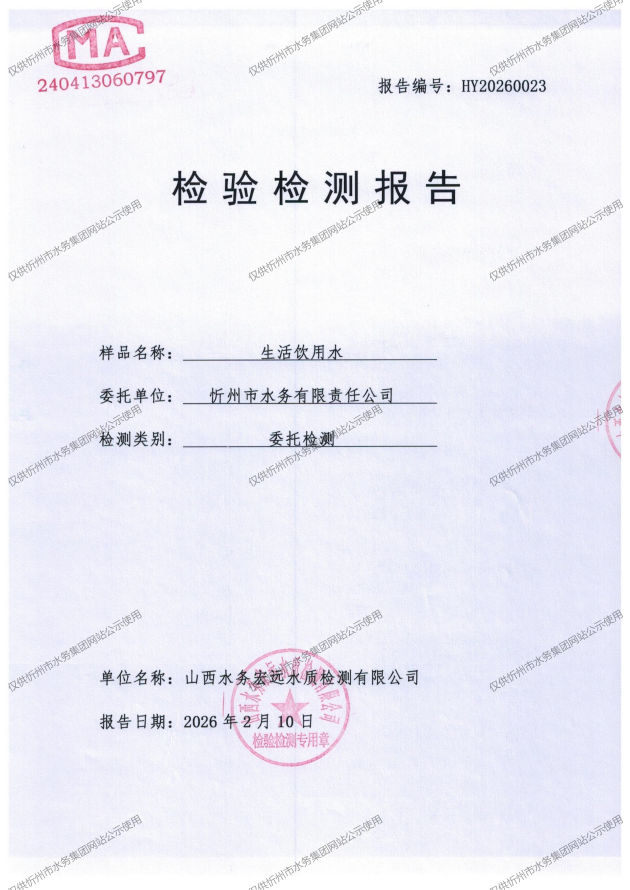 忻州城區(qū)公共供水水源水、出廠(chǎng)水、管網(wǎng)水、管網(wǎng)末梢水2026年2月份水質(zhì)信息公示