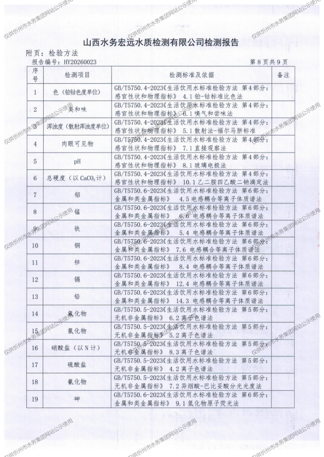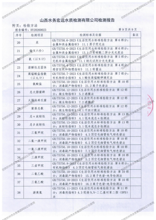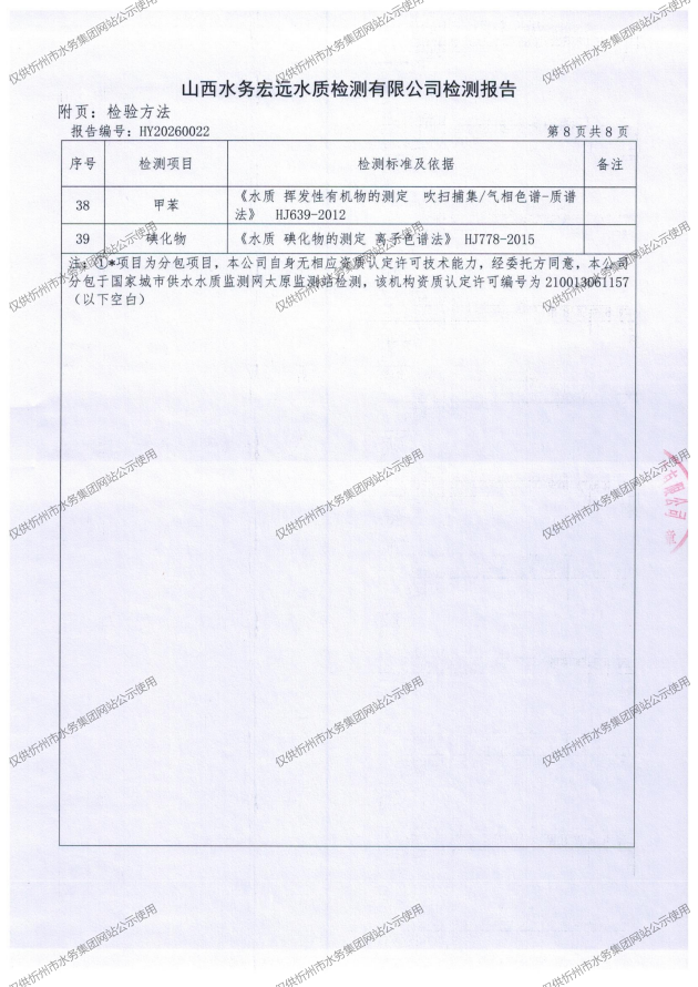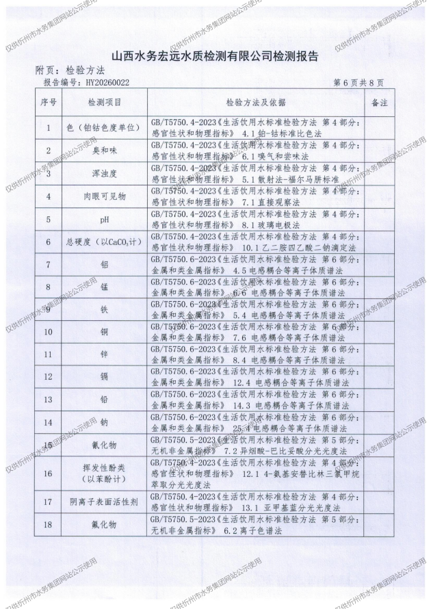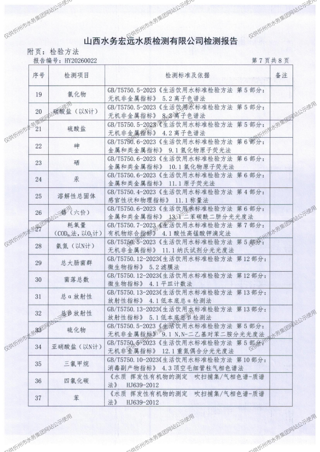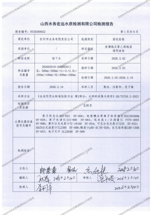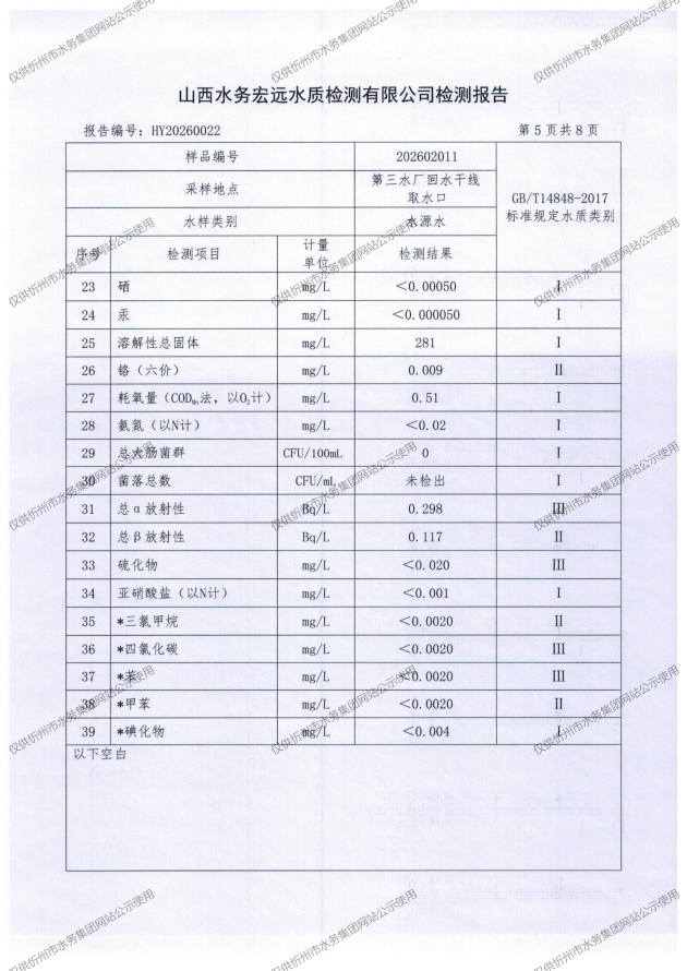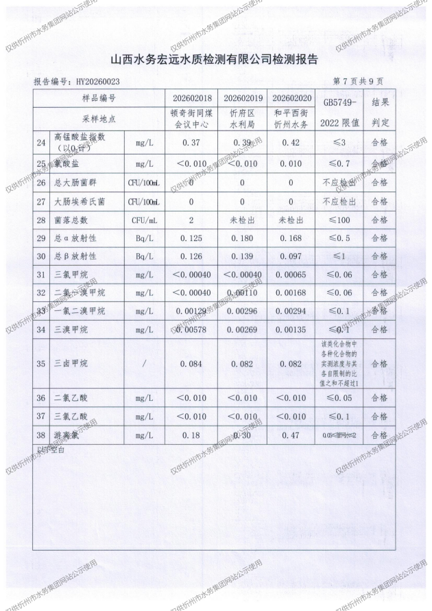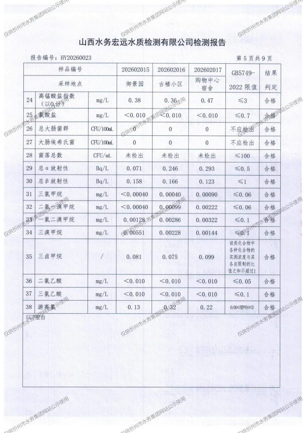 忻州城區(qū)公共供水水源水、出廠(chǎng)水、管網(wǎng)水、管網(wǎng)末梢水2026年2月份水質(zhì)信息公示