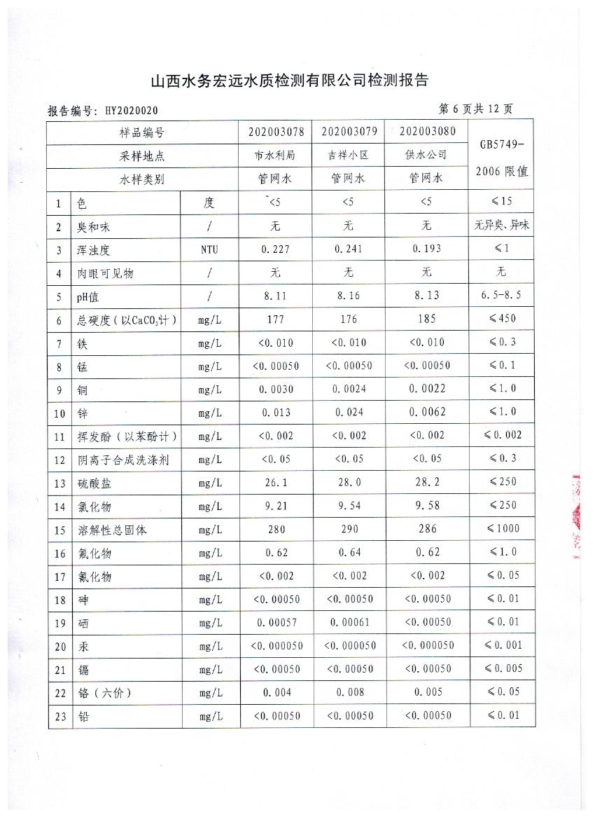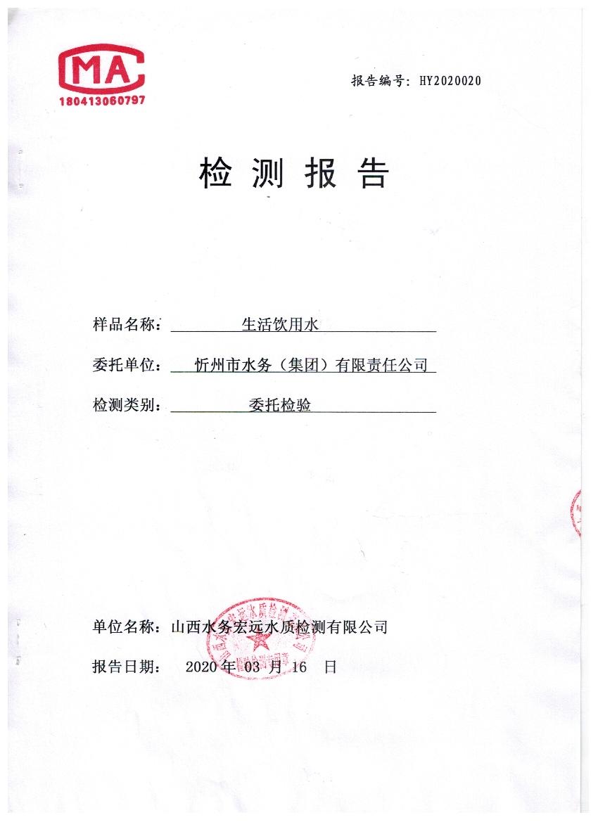 忻州城區(qū)公共供水水源水、出廠水、管網(wǎng)水、管網(wǎng)末梢水2020年3月份水質(zhì)信息公示